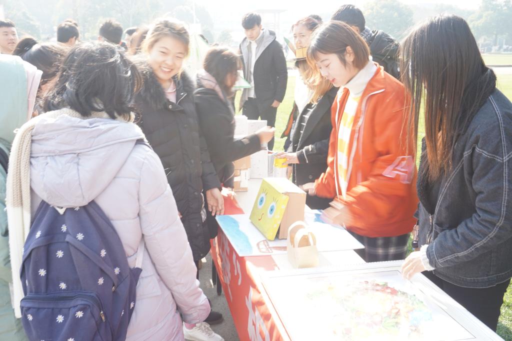 现场准备了大量的快递包装盒,同学们发挥想象力和创造力,利用泡沫盒、包装纸、废弃的一次性筷子等各种材料对快递盒进行了“再利用”,制成了各种各样的作品,有可爱的纸盒人、创意收纳盒、装饰画等各种作品,引得过往同学们驻足观看。