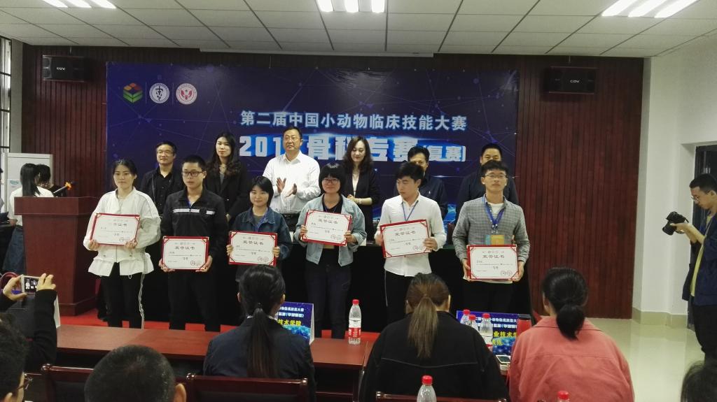 经过《留置针埋置》、《皮肤缝合》、《大转子撕脱性骨折处理》和《股骨中段斜骨折处理》4个项目的比拼,最终,畜牧兽医学院16艾贝尔学徒制班的袁梦、胡一珍2名同学获得了本次比赛一等奖,进入全国总决赛。