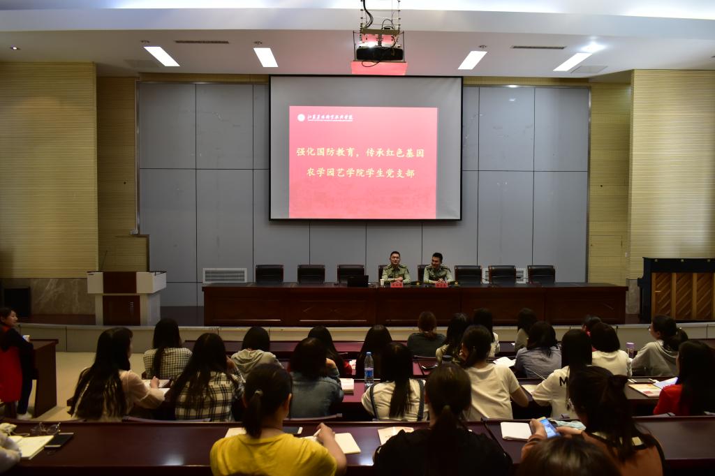 主题活动分为“军地结对同行,红色接力共进”——入党积极分子与部队军官学员结对、“强化国防知识,传承红色基因”入党积极分子培训、以及“感悟现代农业,筑梦红色之旅”农博园参观。结对活动中,董慧副书记首先代表学院对各位领导和学员们的到来表示了热烈的欢迎,并且向大家介绍了学校的基本概况,十四大队大队长刘文忠就“传承红色基因,担当强军重任”的主题教育意义及军地共建的设想向大家做了介绍,之后双方代表签订了红色教育结对卡,为日后工作的开展搭建了互助平台;积极分子培训讲座中,韩玉春,张盼攀两名军官学员从我国军队军兵种、部队军衔、新时期国家的军事战略和政策等方面为积极分子们开展了国防知识讲座;内室活动结束后,董书记和党支部老师还陪同军官学员们一起到农博园参观,双方在感受现代农业气息的同时进一步促进了共建友谊。