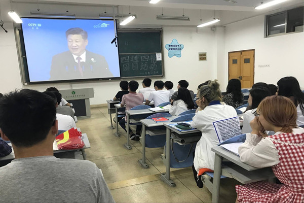 近日,学院各团支部开展了一系列内容丰富多彩、形式新颖的主题团日活动。其中,16物流管理班组织大家观看习主席系列重要讲话的演讲视频,并重温了入团誓词;16电子商务2班举办了“四进四信”知识竞答活动;16文秘班观看了爱国影片《红海行动》。其余各班则开展了形式多样的“四进四信”主题班会。