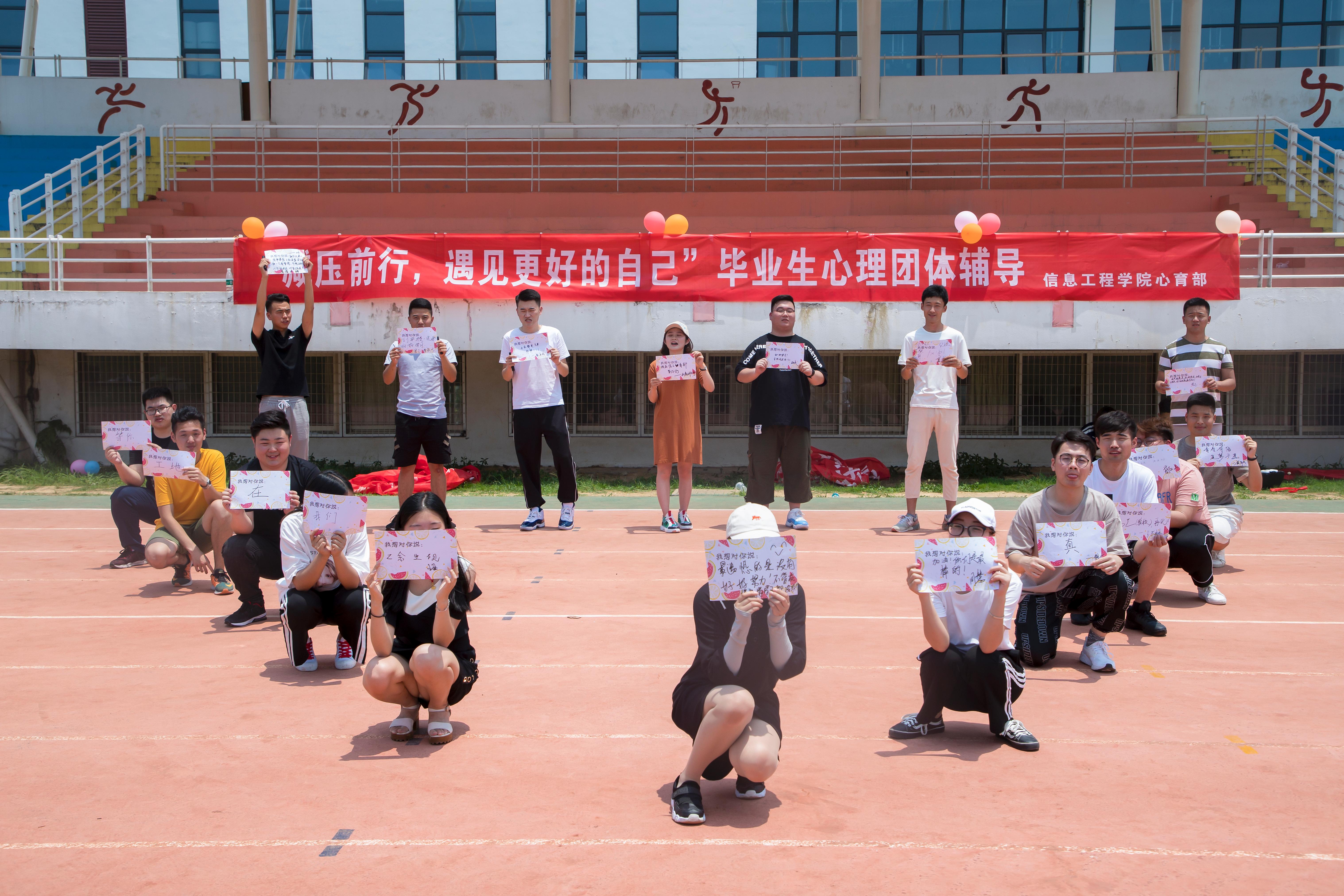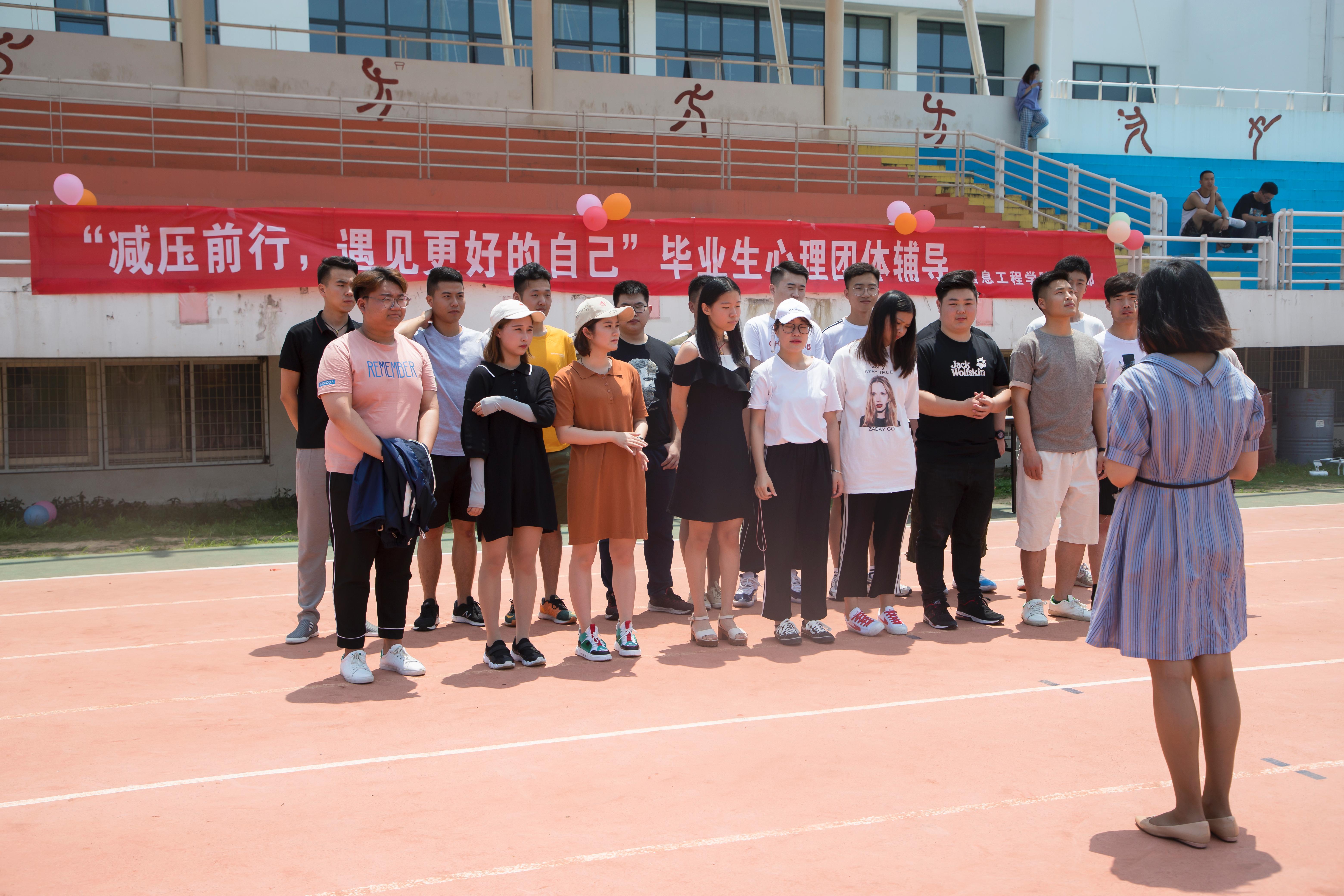 信息工程学院于6月6日在北校区操场为2018届毕业生开展“减压前行、遇见更好的自己”毕业生专题户外心理团辅。