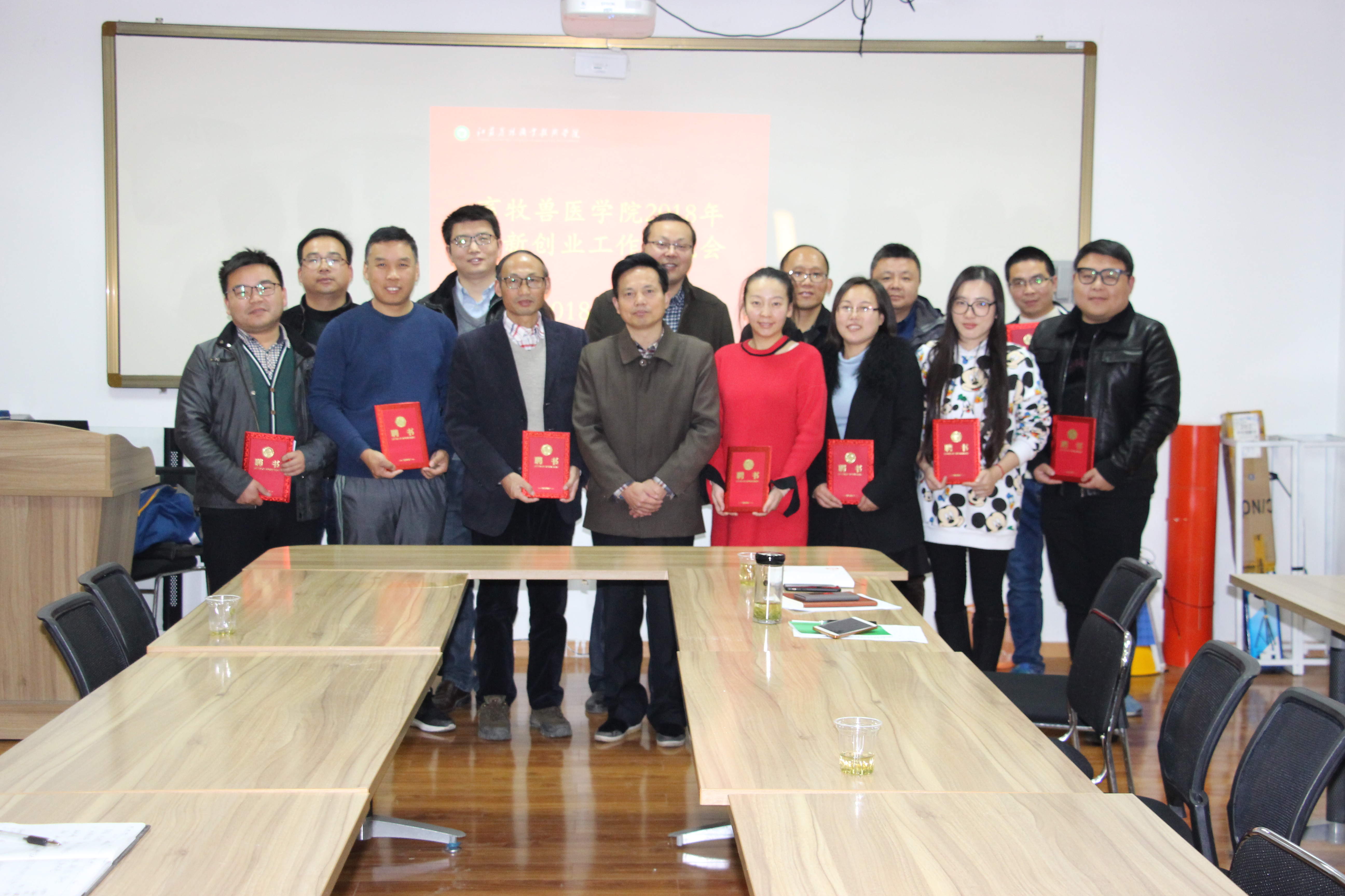 会上,陈军等4位老师就赴台参加创新创业培训的体会与现场老师们做了交流,从台湾大学创新创业教育发展与培训、创新创业教育资源融合、创新创业比赛、学生素质养成等方面进行了分享。王会聪等4位老师从从 “互联网+”、“发明杯”、“创星杯”、“中牧杯”等比赛经验进行了交流。活动中,刘国芳等15名老师被聘为畜牧兽医学院大学生创新创业第一批导师。