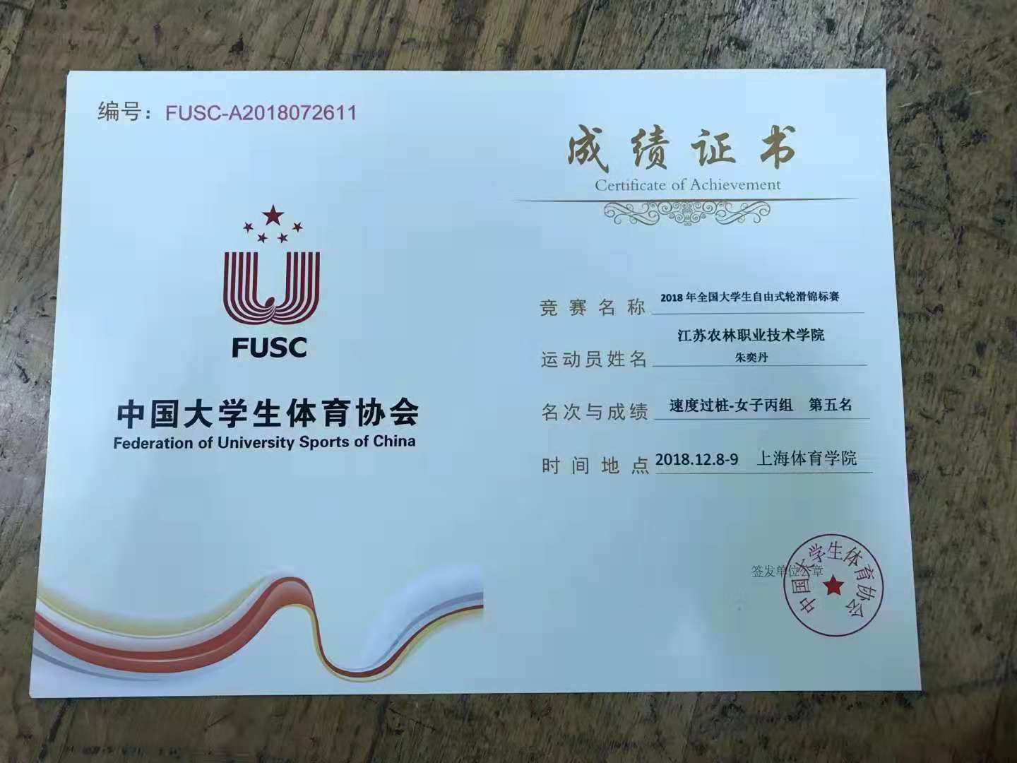12月7日至9日,体育部T-MAX轮滑社代表我院参加在上海举行的2018全国大学生自由式轮滑锦标赛。经过激烈的争夺,朱奕丹同学荣获速度过桩比赛女子丙组第五的好成绩。