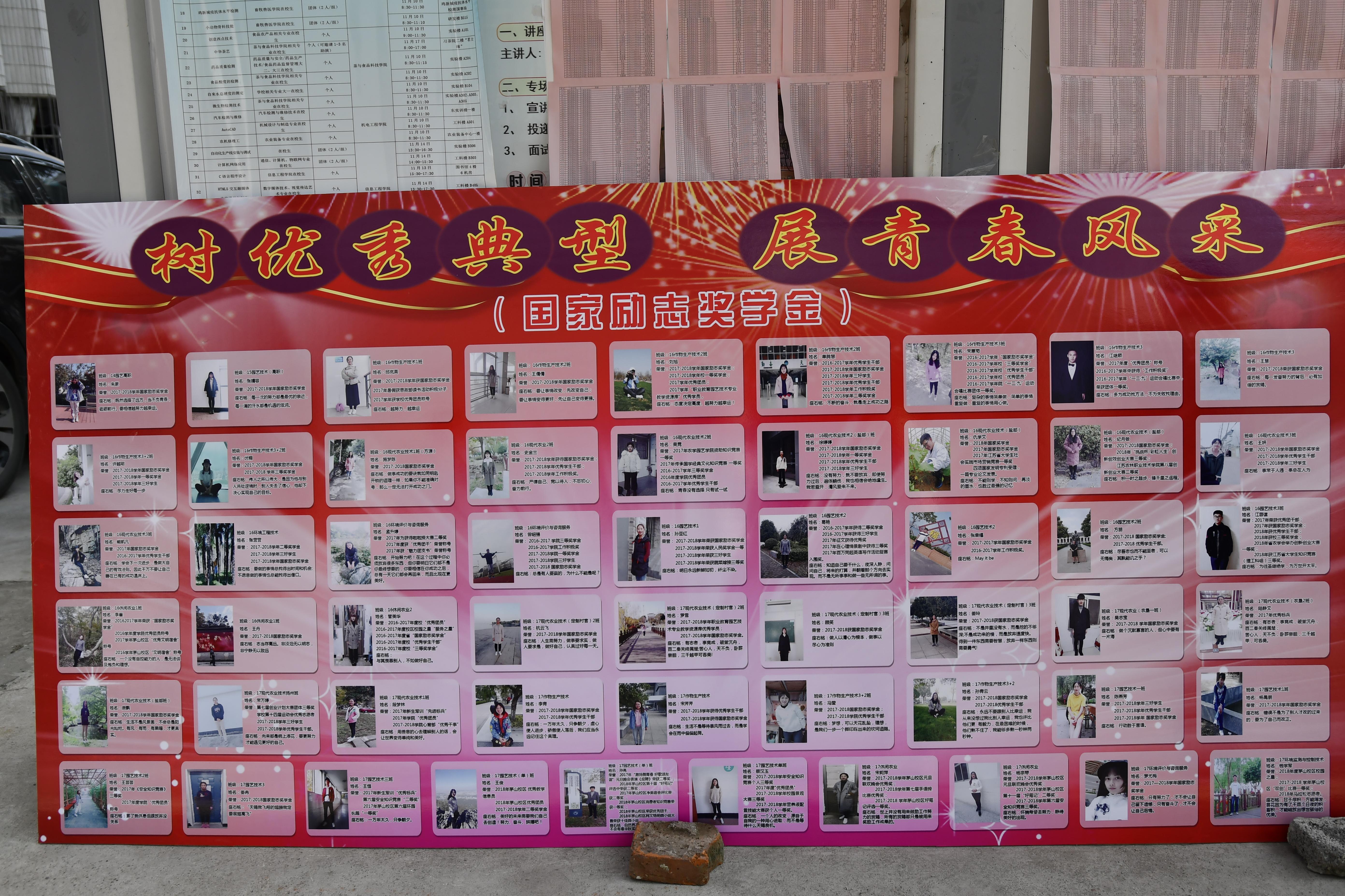 农学园艺学院于12月18日中午在食堂门口开展了第三届国家奖学金、国家励志奖学金、优秀学生干部优秀学生事迹风采展活动。