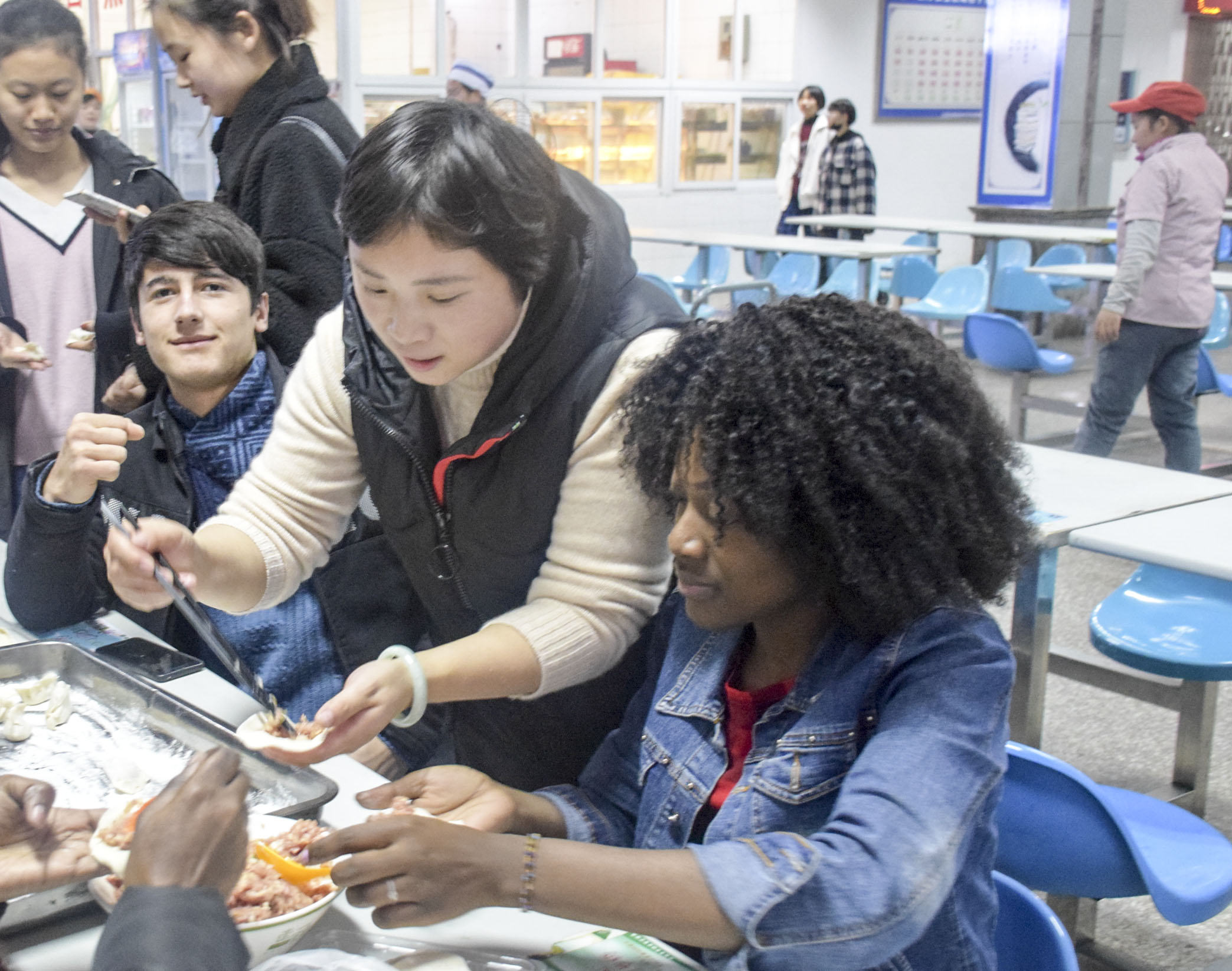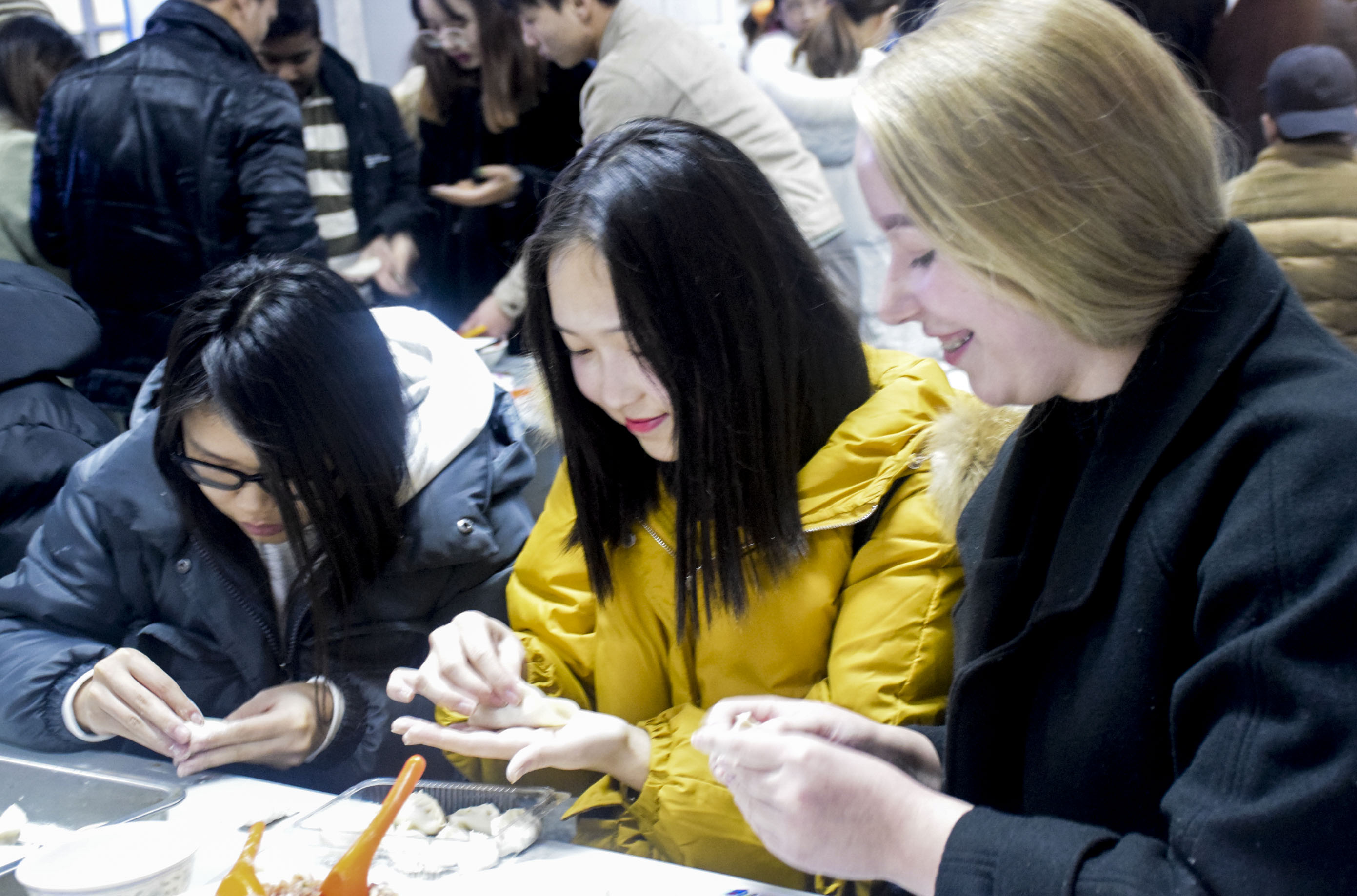 为弘扬中华传统文化,共筑国际友谊,12月19日下午,我院国际交流合作中心和文之源社团共同组织了“温情冬日,快乐冬至”包饺子活动。17文秘全体同学和40多名留学生共同参与了此次活动。