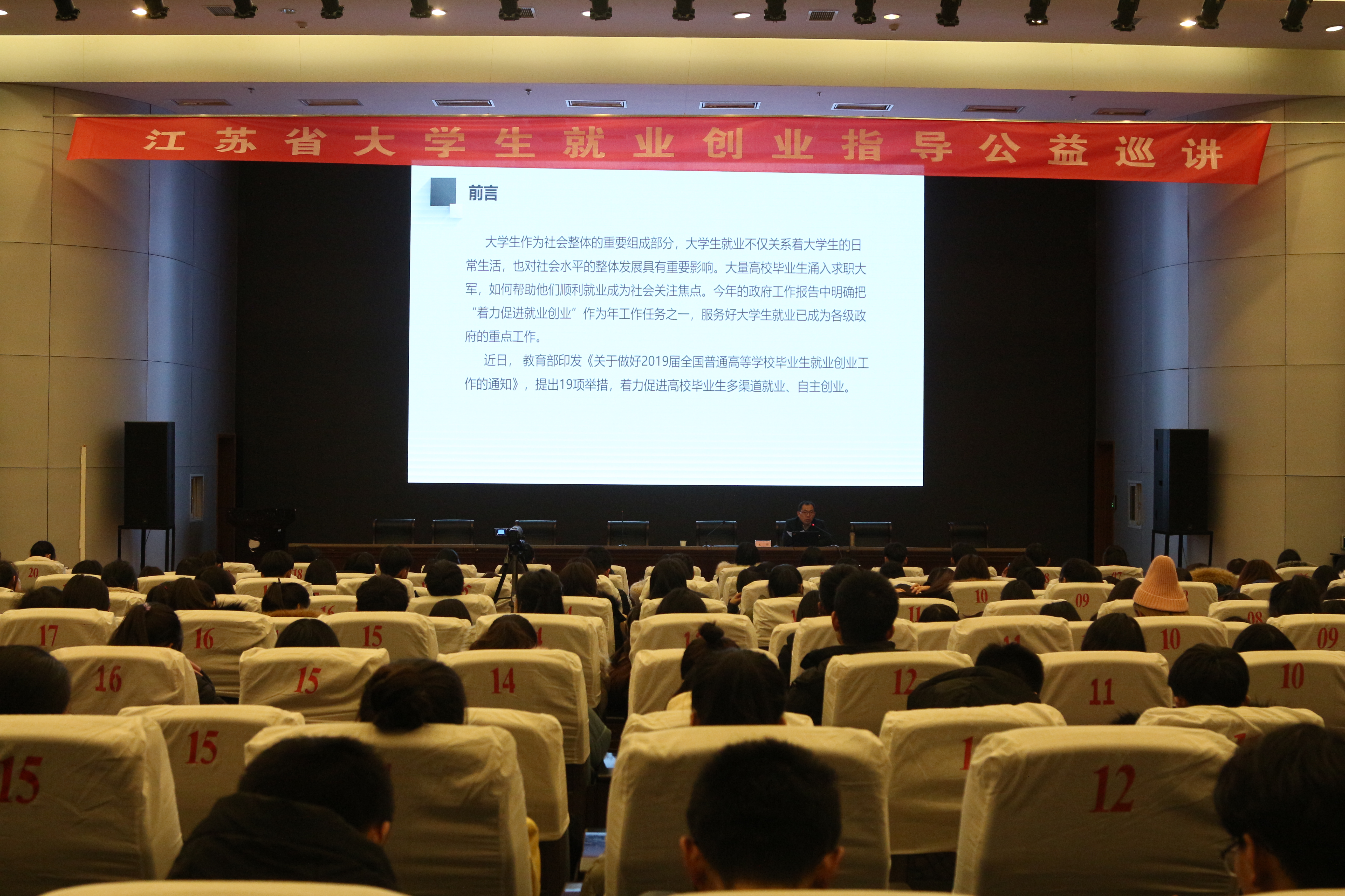 近日,2018年江苏省大学生就业创业指导公益巡讲活动在我院图书馆报告厅举行。国家高级职业指导师、教育部首批创业指导师、南京林业大学创新创业学院副院长王锋老师为我院学生做了题为“就业形势和政策解读”的专题讲座。