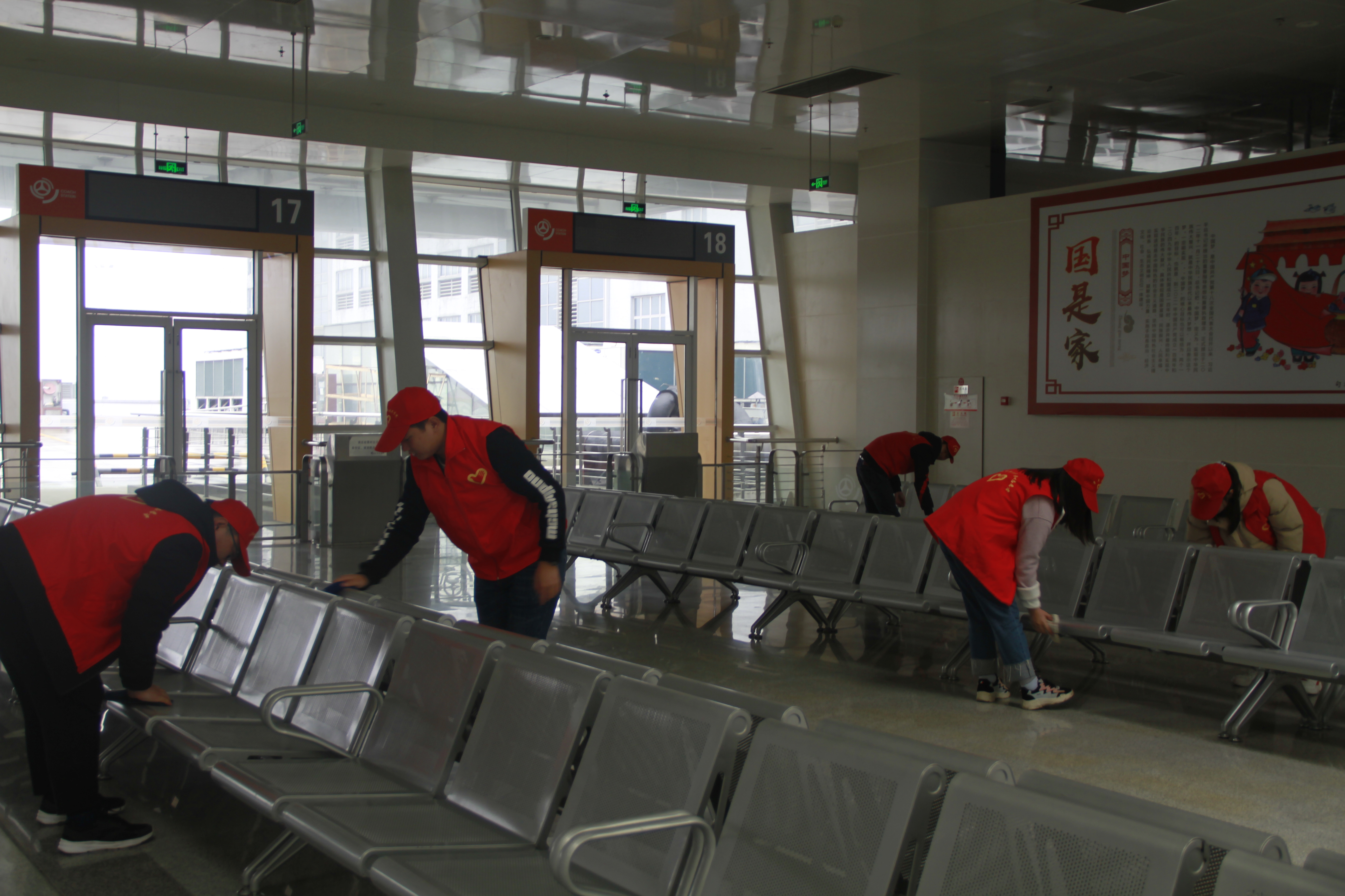 活动中,志愿者们热情服务,微笑待人。在车站工作人员的指导下分为三组,一组负责售票大厅的票务导购工作,引导旅客按序排队购票,帮助旅客们解答出行、电子购票取票疑惑,并提醒帮助旅客们过安检;一组志愿者们提醒旅客过安检,帮助乘客将行李放入安检机,并将顺利通过安检的行李拿出,帮助乘客将行李搬到指定位置;还有一组负责候车厅的卫生打扫工作,他们仔细的擦拭座椅,保持地面整洁,对乱扔垃圾,随地吐痰的旅客文明劝告。