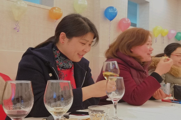 座谈会结束后,大家移步调酒实训室一边学习如何调酒一边面对面地交流心得,女同胞们欢声笑语,沉浸在幸福喜悦的节日氛围中。