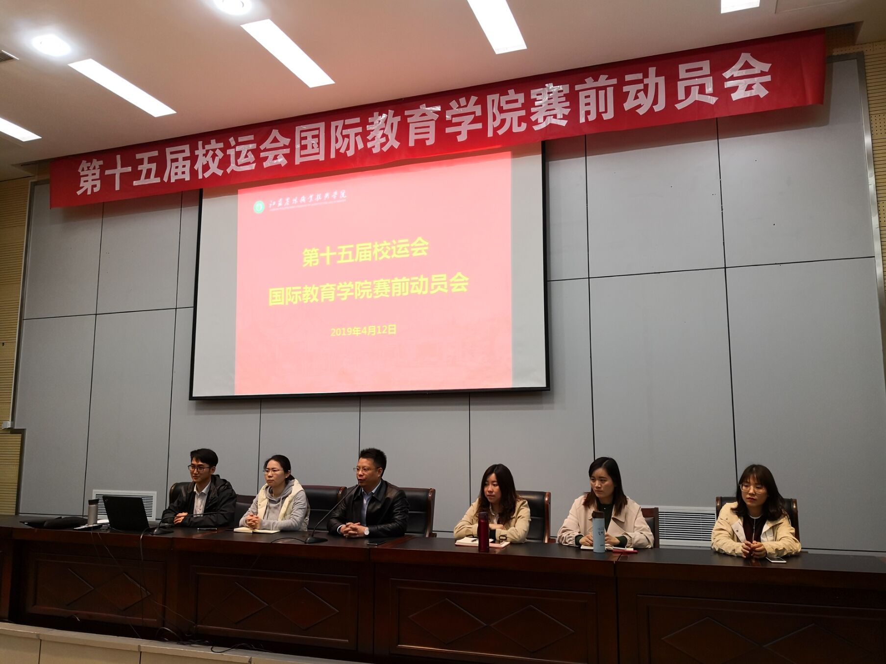 为了迎接第十五届全校运动会,4月12日下午,国际教育学院在研发楼报告厅召开了赛前动员大会,该院相关负责同志、全体来华大一留学生参加了此次动员大会。