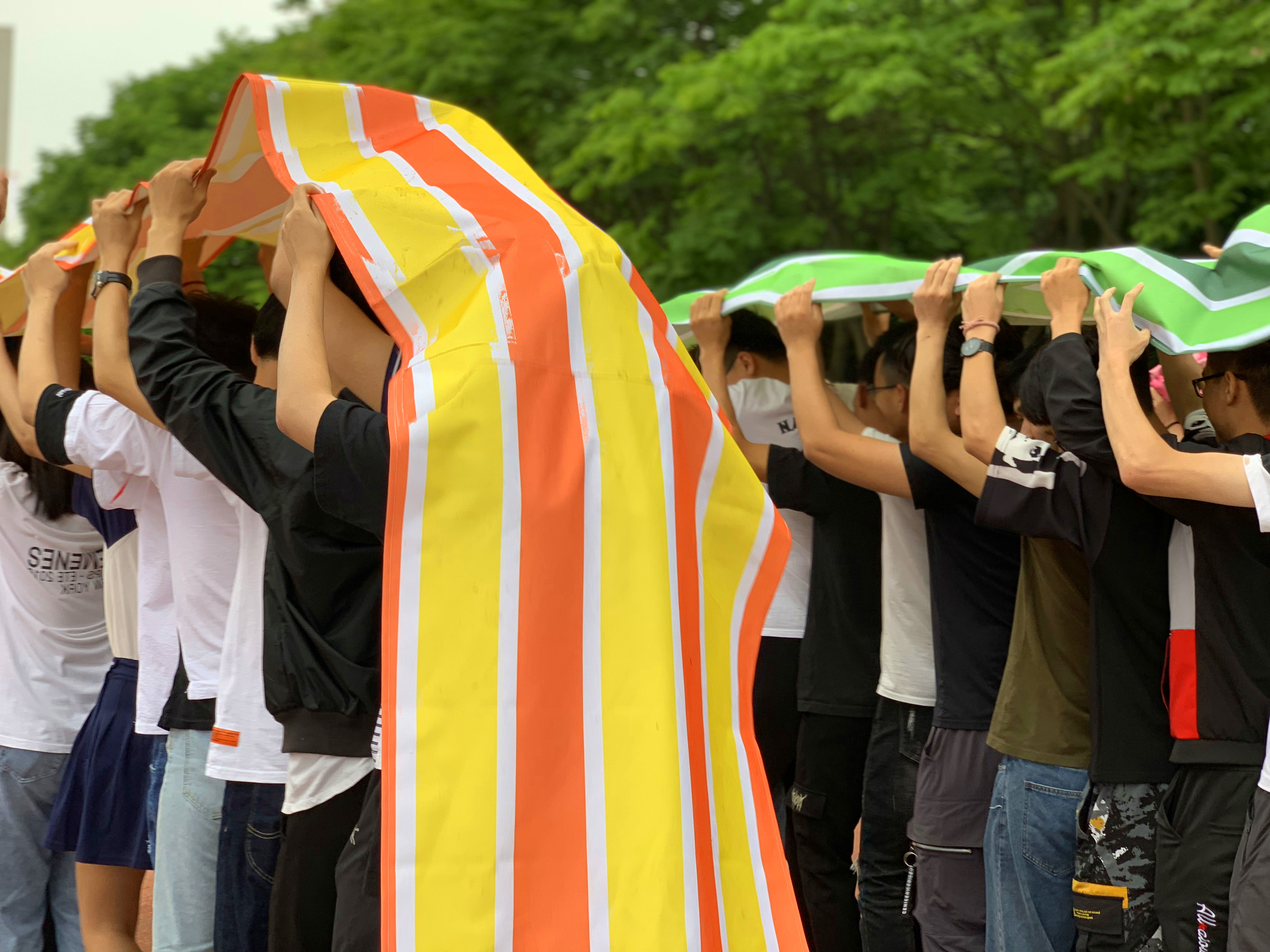 本次活动延续了前几季的轻松氛围,同学们首先从运动场看台出发,每一百米为一个站点,围绕一圈赛道后回到起点。各站点的精彩环节连接紧凑,有条不紊,心有灵犀、无敌风火轮、穿越火线、扑面而来等紧张刺激的游戏,让同学们在欢笑中激扬青春梦想,在合作中撒播青春热血。