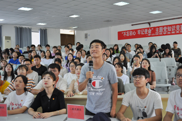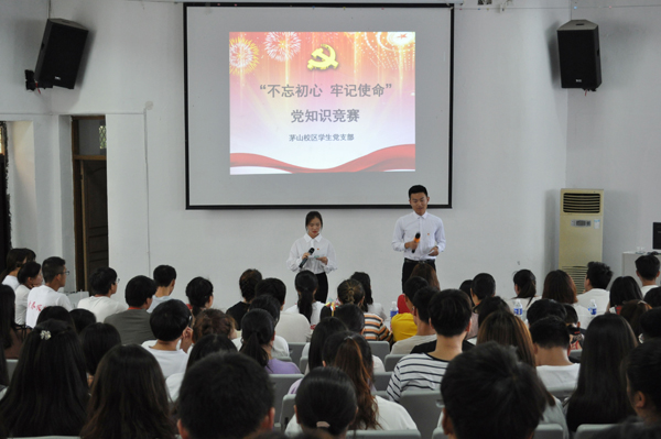 6月12日,茅山校区学生党支部组织180名入党积极分子开展了“不忘初心、牢记使命”迎七一党知识竞赛活动。