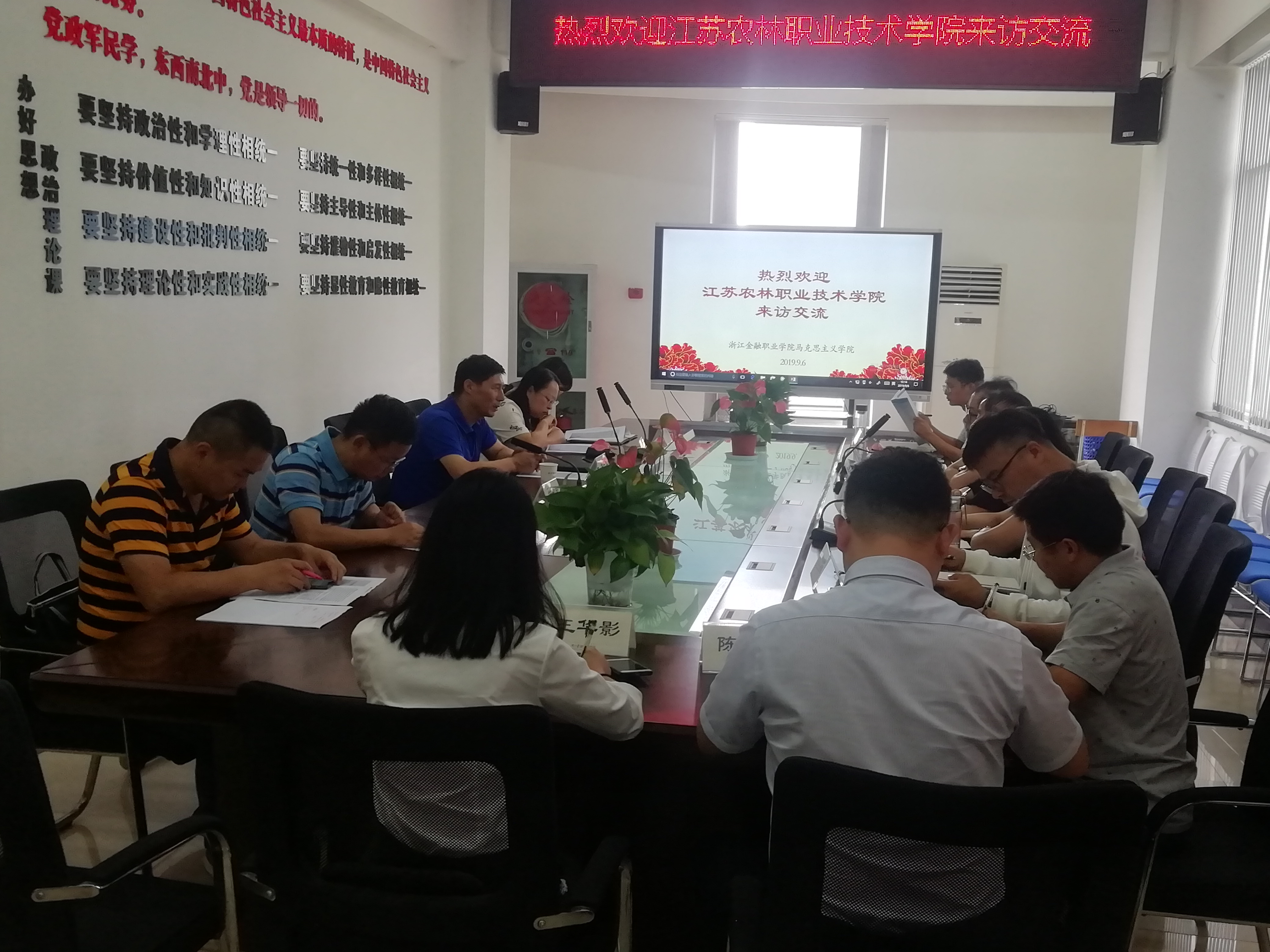 9月6日,江苏农林职业技术学院马克思主义学院一行9人在陈立娥副院长的带领下赴浙江金融职业学院和嘉兴职业技术学院交流学习。