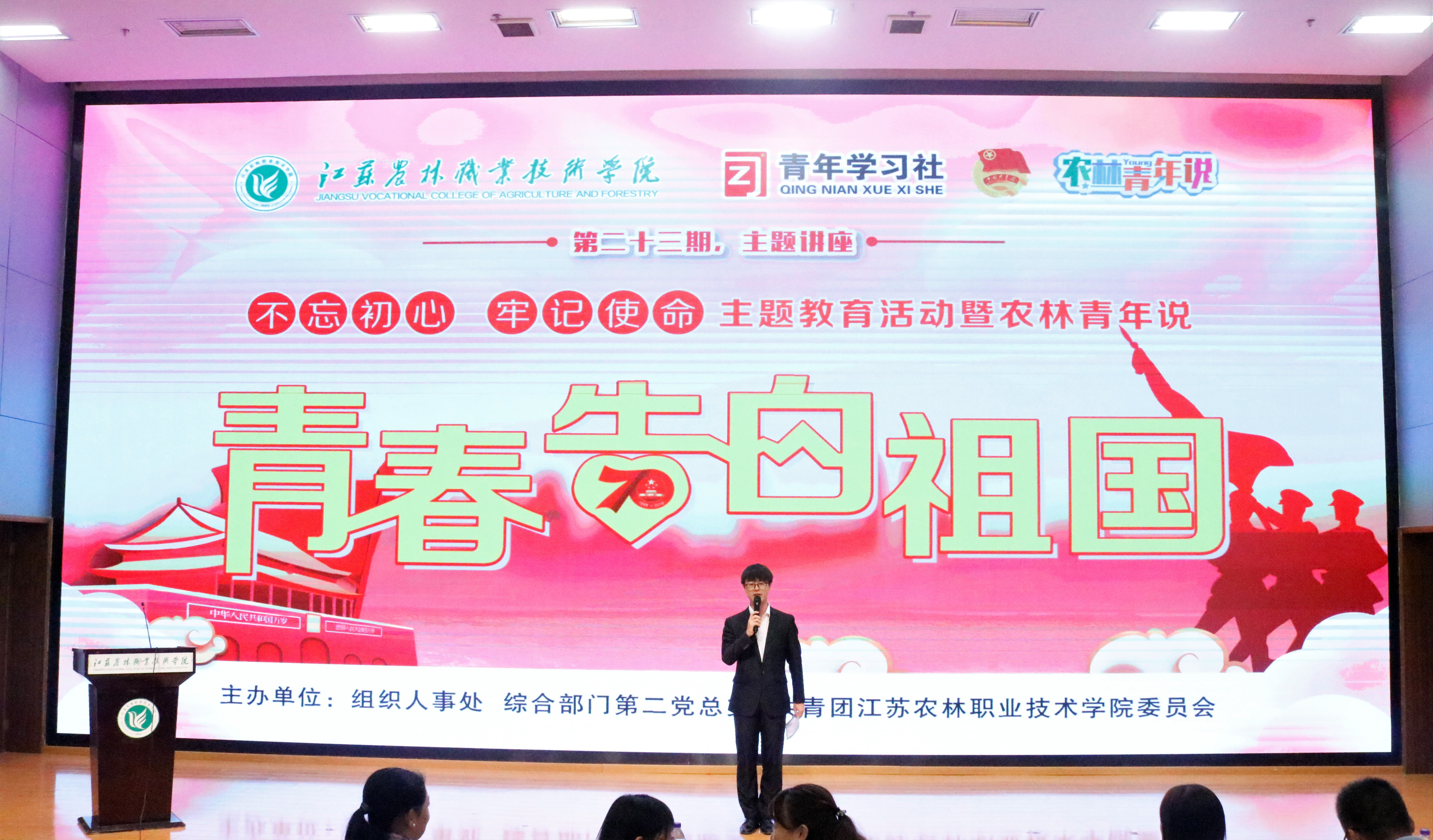 9月26日晚,由学院团委主办的第二十三期农林青年说之“青春告白祖国”主题微演讲活动在图书馆报告厅举行。镇江团市委学少部副部长包文卉出席活动,各二级学院共计350余人参加活动。