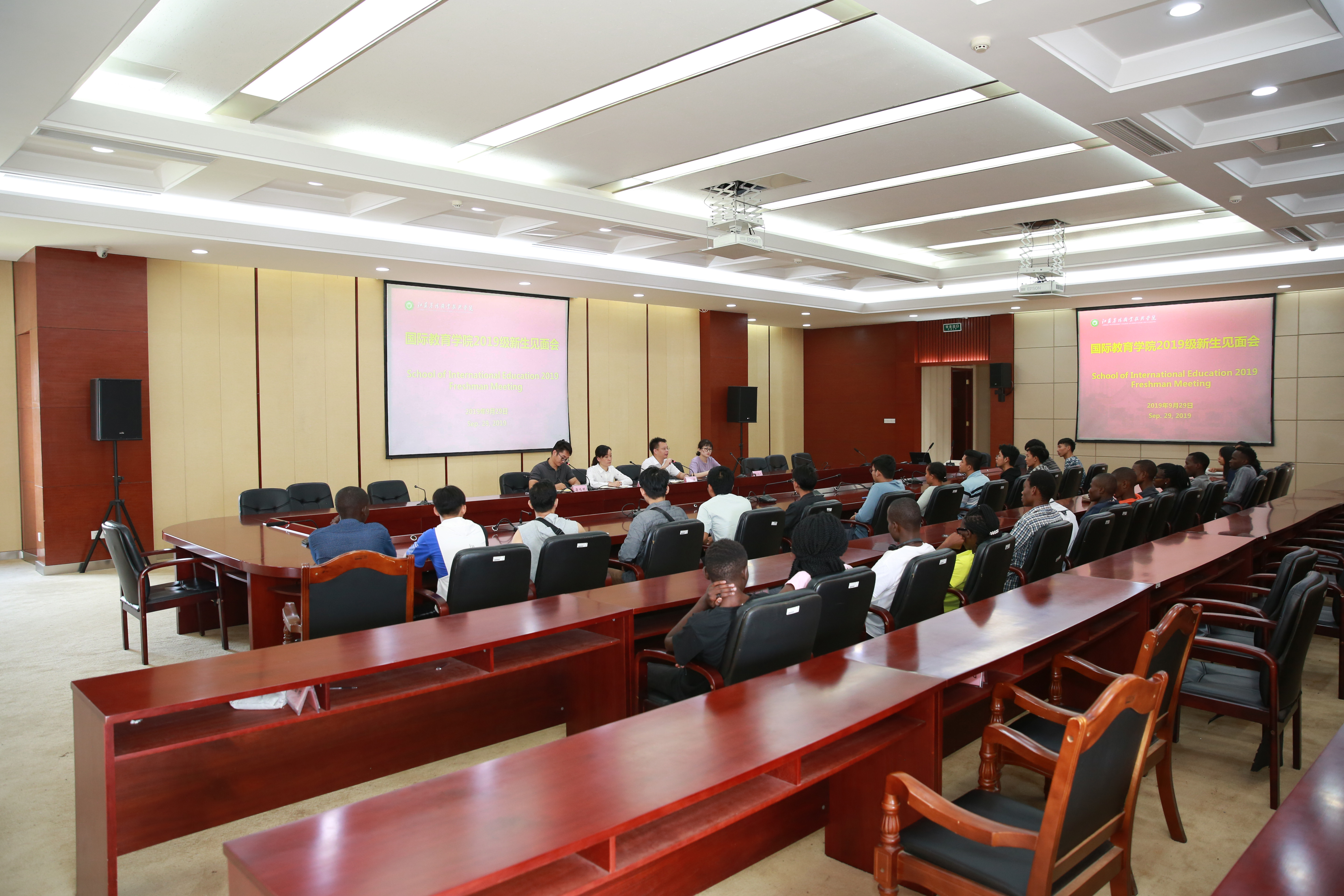 为帮助2019级来华留学新生更好地适应在我校的留学生活,9月29日上午,国际教育学院在综合楼九楼会议室举行了本学期第一次新生见面会,国庆节前首批报到的28名2019级留学生参加了见面会。