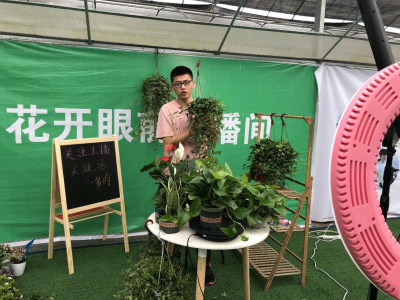 “欢迎大家来到直播间,我是今天的主播王在盛,今天为大家带来的是句容的清新绿植,希望能给大家带去一份夏日的清新……”5月31日,江苏省句容市后白镇福源电子商务园里一场直播正在如火如荼的展开,来自江苏农林职业技术学院的“乡里巴人”电商兴农社团正通过淘宝、京东、抖音等直播平台,宣传推荐句容各类特色农产品。