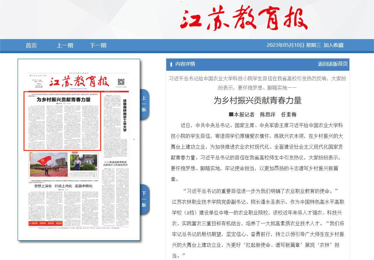 下一条:【人民日报】江苏农林职业技术学院:善学致用“新农人”,托起产业致富梦
