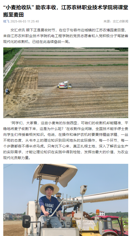 【交汇点】报道机电工程学院将课堂搬至麦田