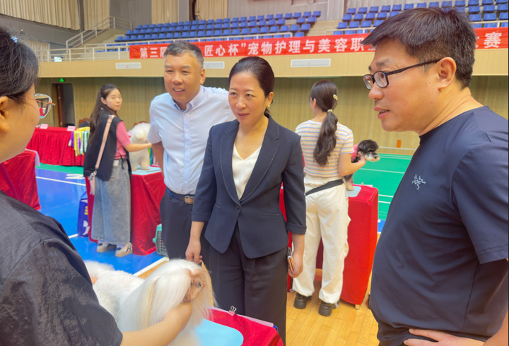 此外,江苏农林职业技术学院畜牧兽医学院依托全国宠物养护行业产教融合共同体,同期举办了第三届“宠美·匠心杯”宠物护理与美容职业技能等级大赛。畜牧兽医学院的2026届毕业生和来自省内的40余名选手同台竞技,参与宠物美容等级认定。等级认定结束后,以新瑞鹏宠物医疗集团为代表的多家企业根据选手表现,现场与获奖优秀选手签订就业协议,直接录用。