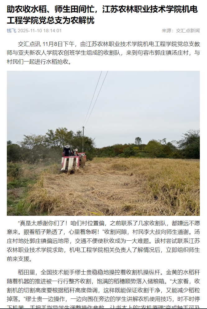 下一条:【江苏教育发布】微信报道农学园艺学院“金色稻田庆丰收 耕读教育润心田”信仰公开课