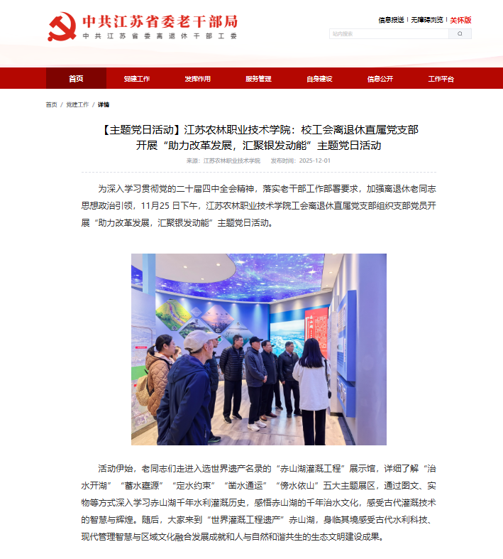 【中共江苏省委老干部局】报道链接:https://www.jslgb.gov.cn/StyleDetails?mode=%E5%85%9A%E5%BB%BA%E5%B7%A5%E4%BD%9C&id=1995307719678099458