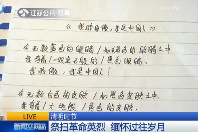 2016年清明节到来之际,为缅怀英烈,培养学生爱国主义精神,茅山校区分团委在校区图书馆会议室举行了以“缅怀先烈,勿忘国耻,热爱祖国”为主题的朗诵会,以此祭奠那些逝去的革命先烈。来自校区的17名维吾尔族同学参加了本次活动。 链接地址: 江苏公共频道 http://v.jstv.com/a/20160401/1459487993527.shtml 句容电视台 http://www.jrntv.com/vod/folder151/2016-04-01/42400.html