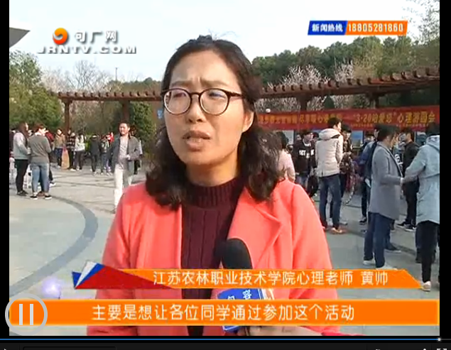 为了帮助大学生渡过季节性心理难关,降低心理危机发生,农学园艺系心育部联合分团委、7栋10栋大学生管理服务站,于3月16日下午在学院励志广场举办了“漫步春光赏游园,尽享暖心遍徜徉”心理游园会。句容电视台对此次活动进行了报道。 链接地址:http://www.jrntv.com/vod/folder151/2016-03-26/41956.html